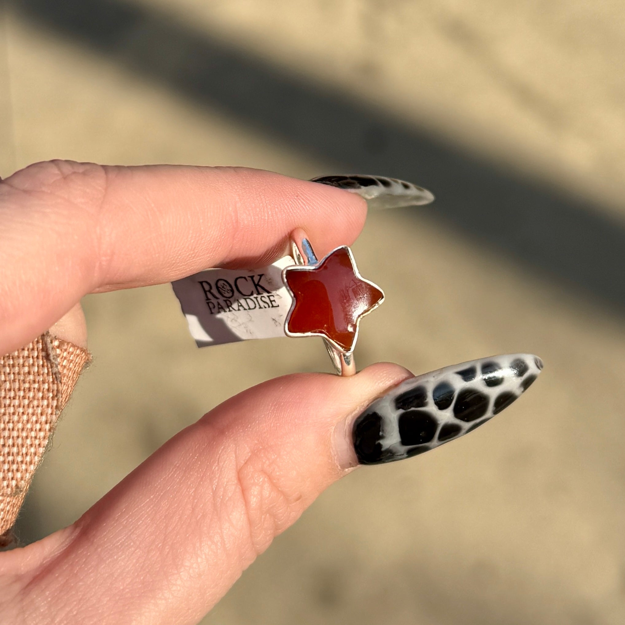 Sterling silver ring with a star-shaped carnelian stone ✨