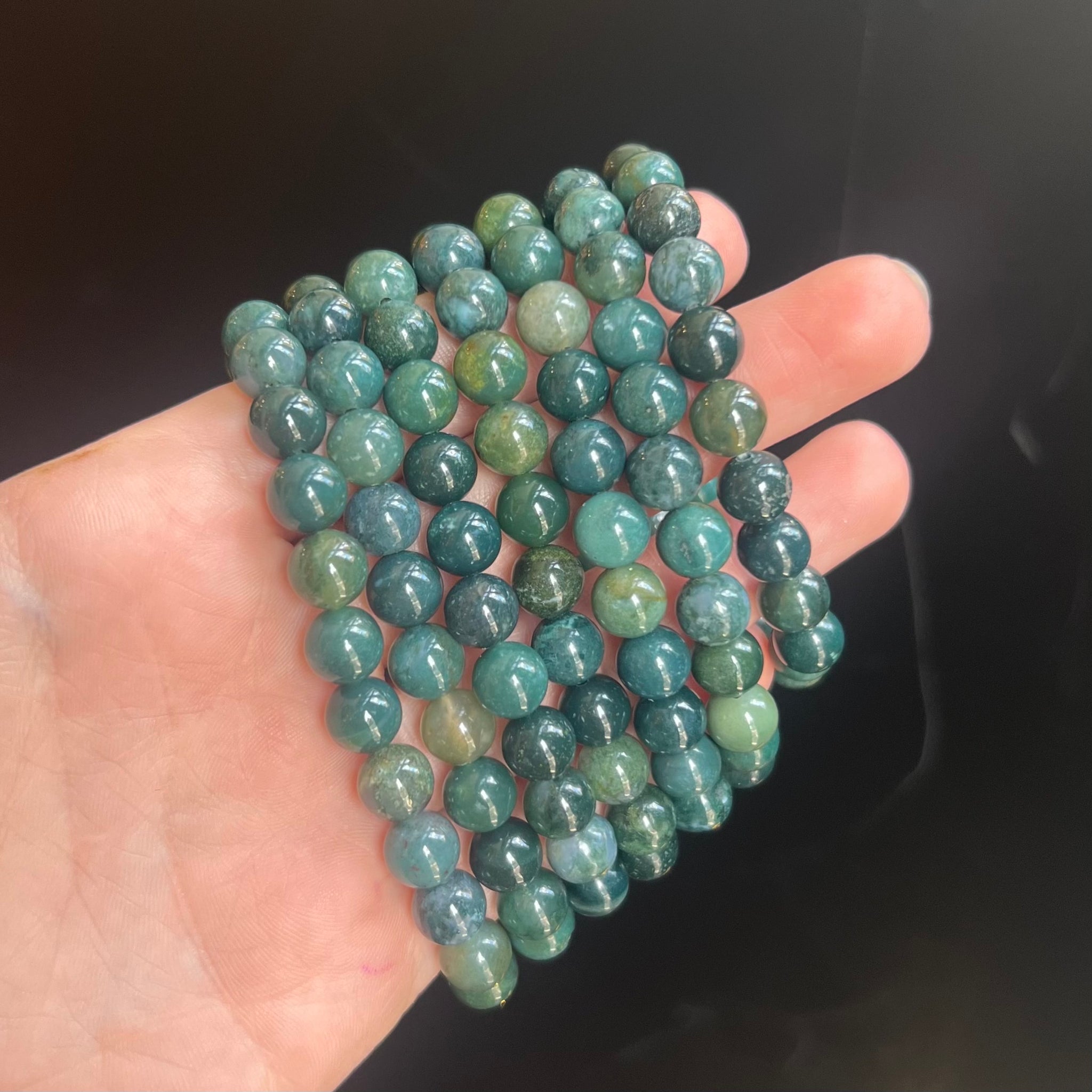 Moss Agate Bead Bracelet